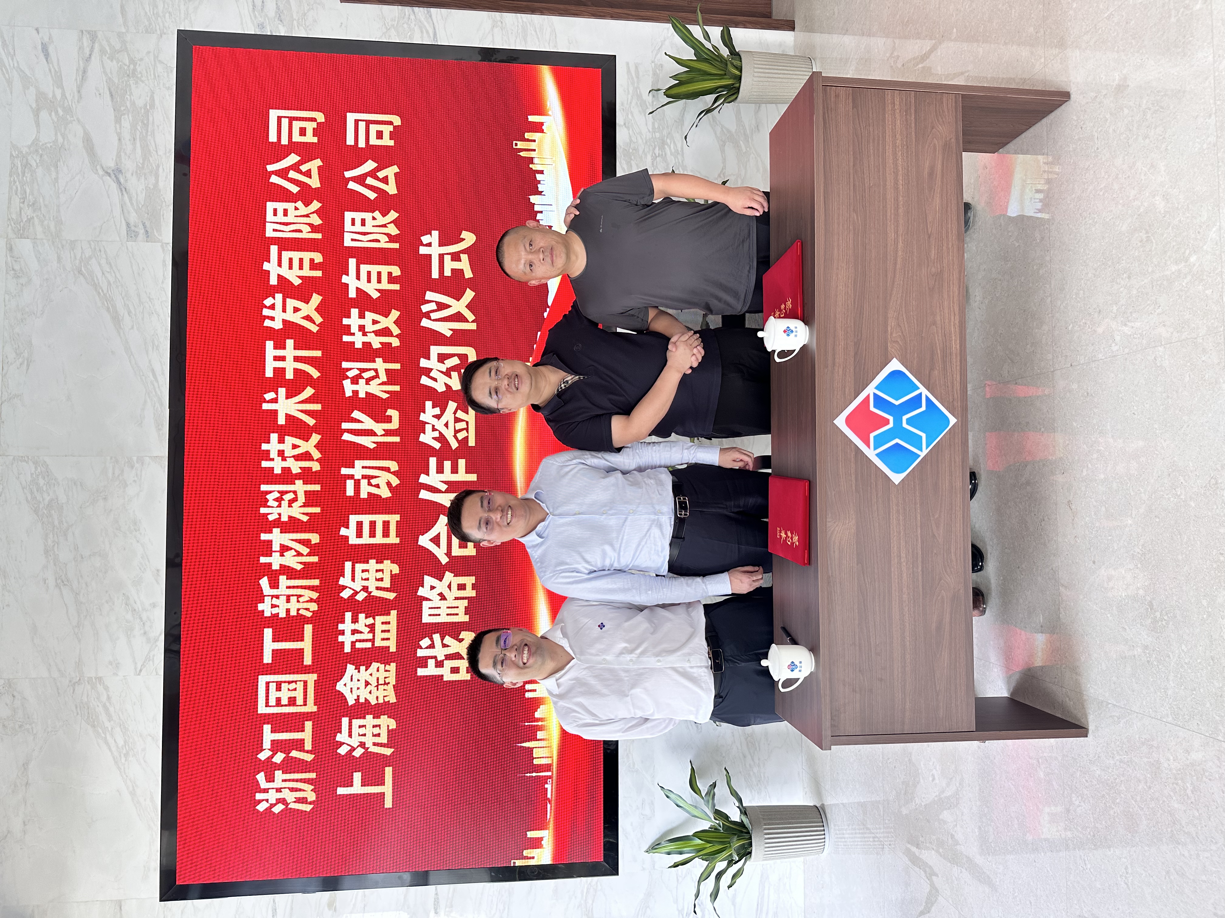 9月1日下午,上海鑫藍海自動化科技有限公司與浙江國工新材料技術開發有限公司及子公司在鑫藍海生產基地簽署戰略合作協議。未來,雙方將秉持互相尊重、互惠互利、自愿平等、開放公平、優勢互補、互利共贏的原則,充分發揮各自優勢,緊密圍繞新材料開發、特冶裝備的定制等方面展開深度合作,共同攜手推動鑫藍海與浙江國工的高質量發展。