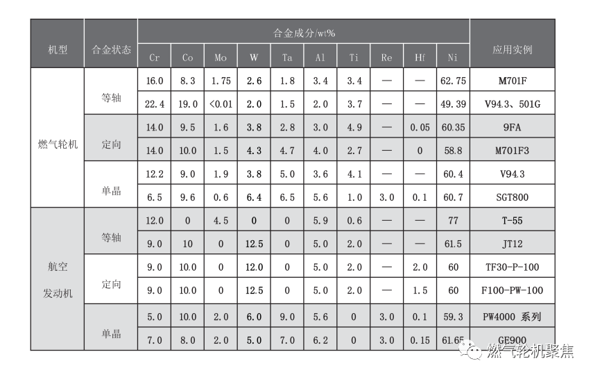 燃氣輪機和航空發動機渦輪葉片高溫合金的成分設計差異主要有以下幾個特點 :
